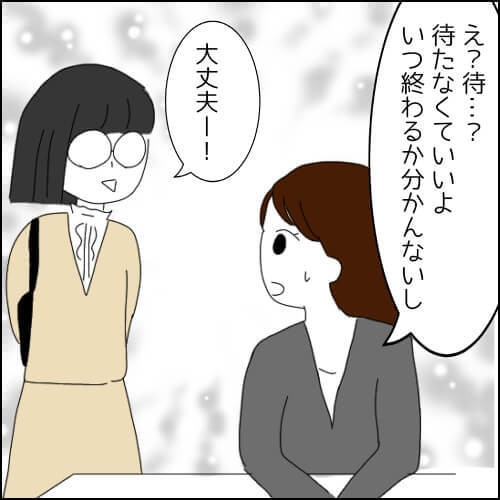 そして終業時間、佐々木さんの「帰ろー」に対して、一さんが「仕事溜まってるから先に帰っていいよ」と返すと……はい出ました、「じゃあ、待ってるね!」。以前もこのパターン、見ましたね。急いで業務を終わらせている一さんが可哀想でしたよね。