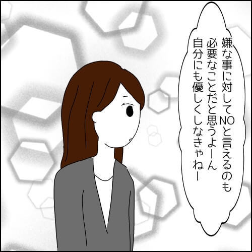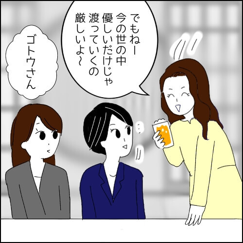 でもここでゴトウさんが登場! 「優しさにつけこんでくる悪い大人は山ほどいる」「嫌な事に対してNOと言えるのも必要」「自分にも優しくしなきゃね」って……。以前、佐々木さんが愚痴っているところに居合わせていたゴトウさん。やはり、ゴトウさんも佐々木さんのことを言っていませんか?