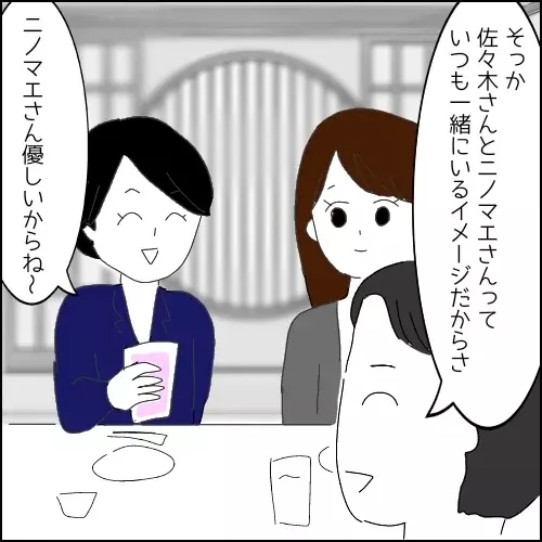 そして今回、終業後に課長の「飲みに行くかぁ?」のひと声で飲み会が発生!一さんも参加したその席で、ヨシダさんに「佐々木さんいないの?」と聞かれ、シタナガさんから「佐々木さんとニノマエさんっていつも一緒にいるイメージ」「ニノマエさん優しいからね〜」と言われた一さん。シタナガさんの“優しい”という言葉になにか含みがあるような……?さては、一さんと佐々木さんの関係性になにか思うところがあるのか!?