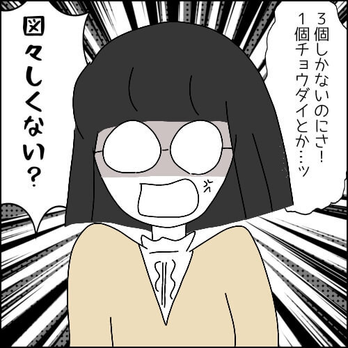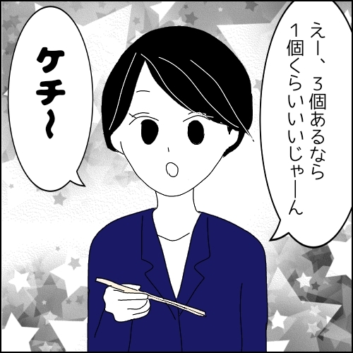 しかし佐々木さん、このブーメランの意味を一ミリも理解していない様子。「なにあの女……」「3個しかないのに!1個チョウダイとか図々しくない?」って——おーい!! それ!あなた!が!毎回一さんに!してること!ですよーーーーー!!! 読者全員で総ツッコミ案件です。