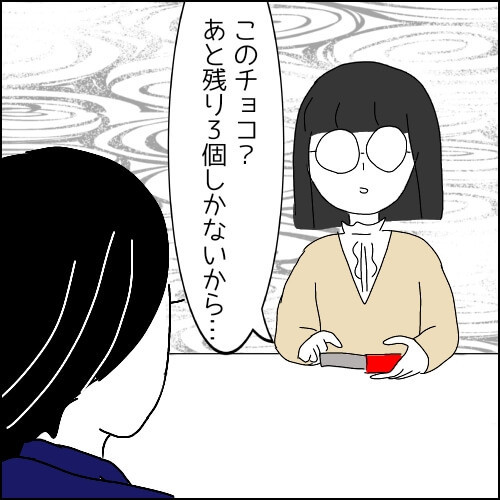 さて今回、シタナガさんが佐々木さんに「そのチョコ1個もらってもいい?」とリクエスト。佐々木さんは「3個しかないから……」と渋ります。……え、ちょっと待って? 3個もあるんだ!? あんなに一さんから一口もらい続けていたのに、自分の分はしっかり3個確保しているんですね(笑)。