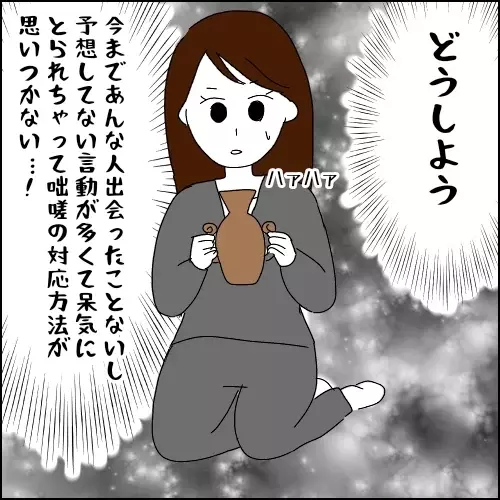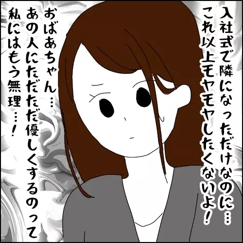 帰宅後の一さん、シタナガさんからもらったストレス解消グッズ「声が消える壺」に向かって絶叫……!そうだよね、叫びたくなるよね。「今まであんな人出会ったことない」「咄嗟の対応方法が思いつかない」と涙目の一さんが切ない……。そしておばあちゃんの教え「優しくしなさい」を思い出しつつも、「あの人にただただ優しくするのって私にはもう無理……!」と決意を固めます。おばあちゃん、この決意は間違ってないよ! 先輩も言ってたでしょ、「甘やかすと優しいは別」って!