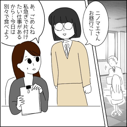 翌日、ついに一さんが動いた! 朝の「おはよー」に「急いでるから先に行くね」とスッ……! お昼の「お昼行こー」にも「今日は別々で食べよう」ときっぱり! 佐々木さんポカーン。