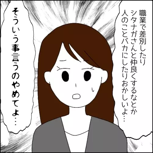 そして、ニノマエさん、とうとうやりました!今までグッと反論を飲み込んできましたが、家族をバカにされたとあってはもう見過ごせません。「職業で差別したり、シタナガさんと仲良くするなとか、人のことバカにしたりおかしいよ…そういう事言うのやめてよ…」と反撃!!!