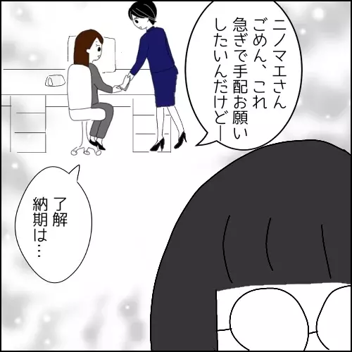 さて今回、佐々木さんは席で放心状態。その横でニノマエさんはテキパキと仕事をこなしています。この対比よ……!
