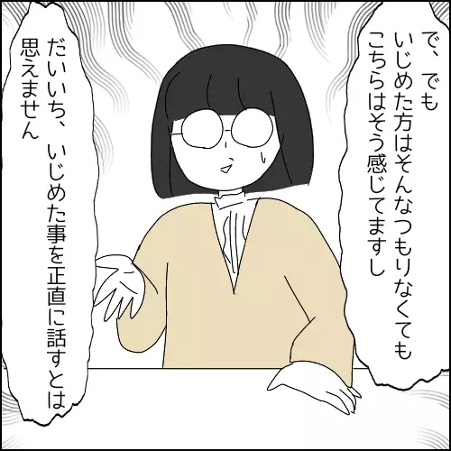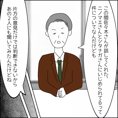 そして課長からも呼び出しが。課長から「本人達はいじめたつもりは無いようだよ」と告げられた佐々木さん。「でも、いじめた方はそんなつもりなくてもこちらはそう感じてますし、だいいち、いじめた事を正直に話すとは思えません」と反論。……佐々木さん、まだ言いますか。