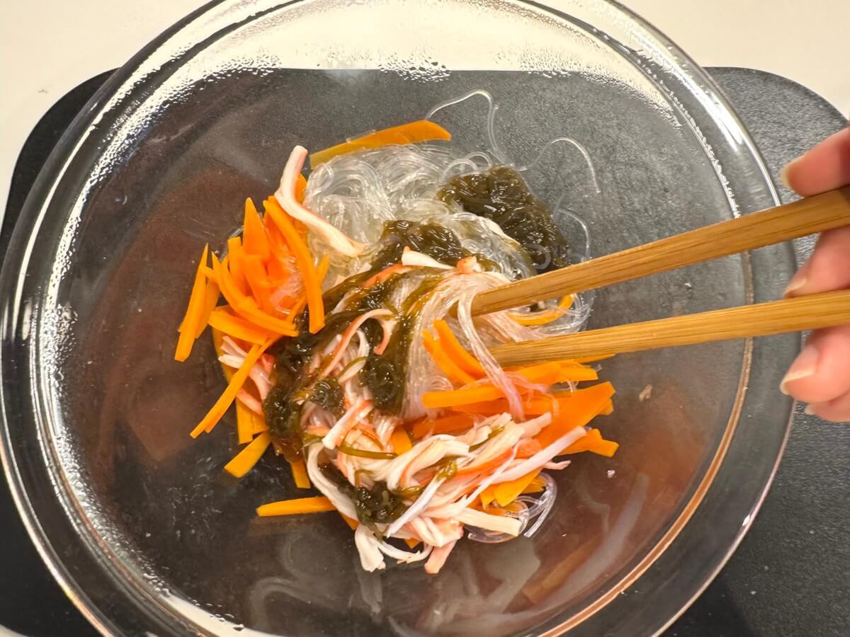 混ぜている間にも春雨が水分を吸って、どんどん量が増えていきます。