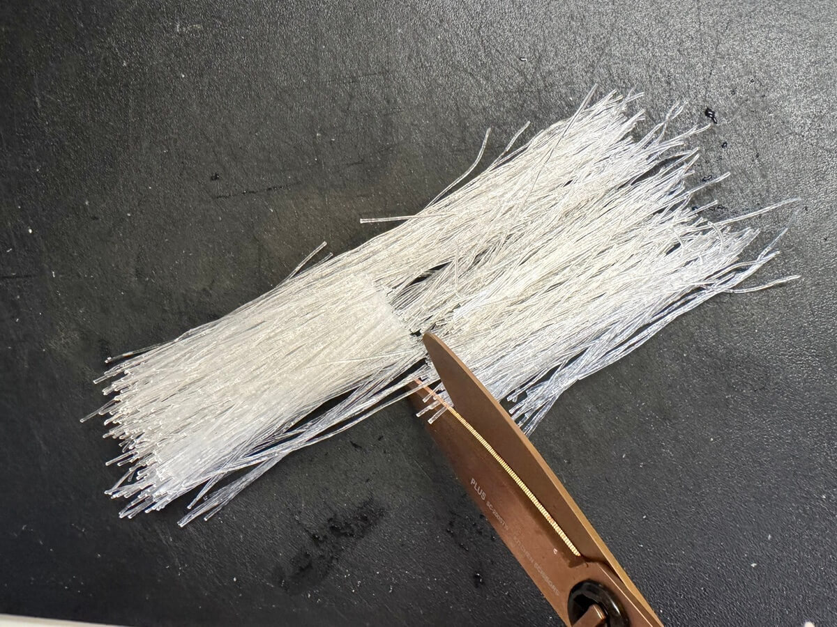 そのままではかたくてとても切れなかったので、今回筆者は少し水にさらして1〜2分経ってからキッチンバサミでカットしました。春雨が少しやわらかくなって無理なく切れましたよ。