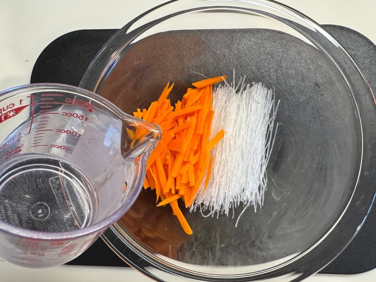 耐熱ボウルににんじん、春雨、水を入れ、