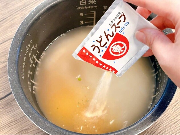 今回は、そんなうどんスープの素を使って炊き込みご飯に挑戦。料理をがんばる余裕がないという日でも頼れるアレンジを紹介します。