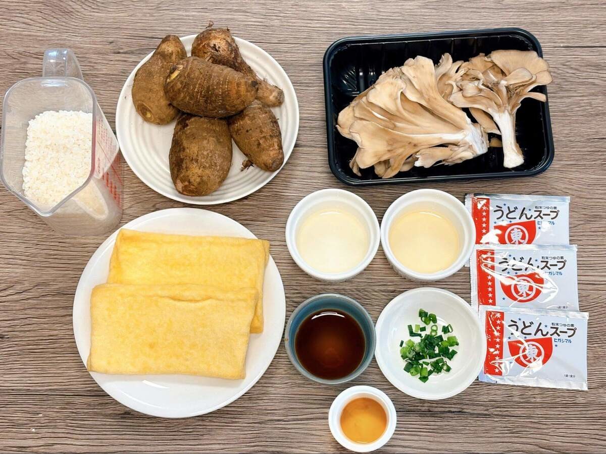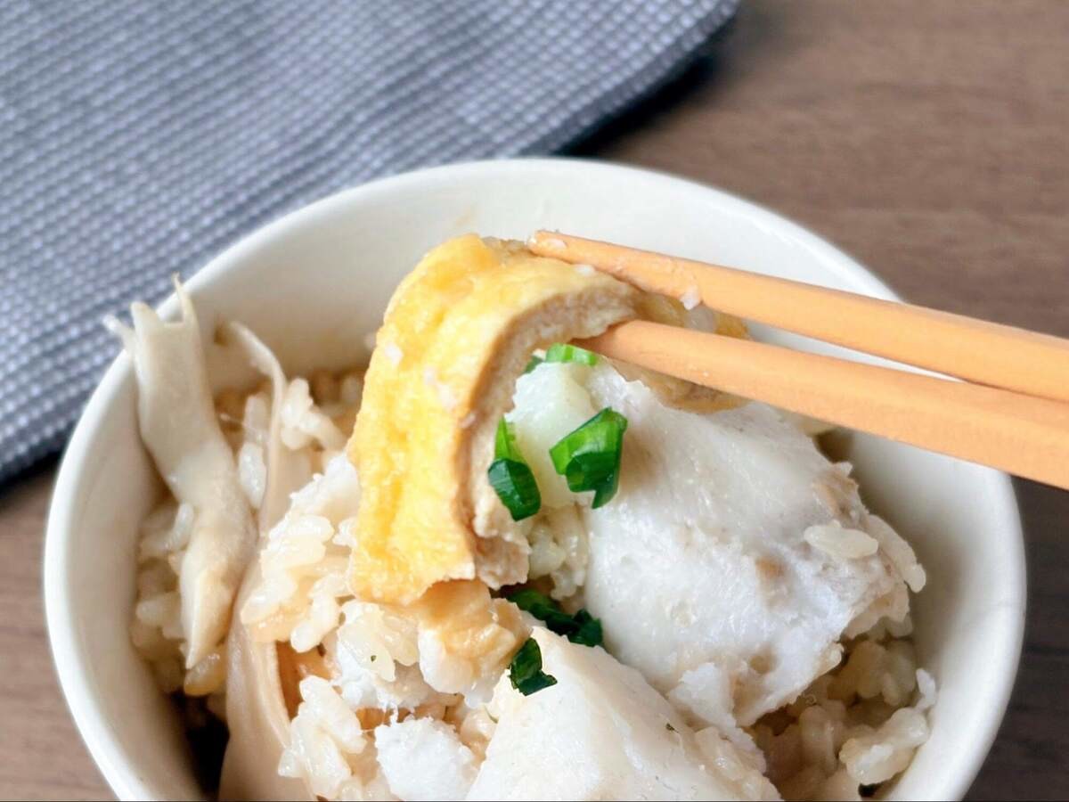 里芋とまいたけとお揚げの炊き込みご飯|うどんスープ活用レシピ