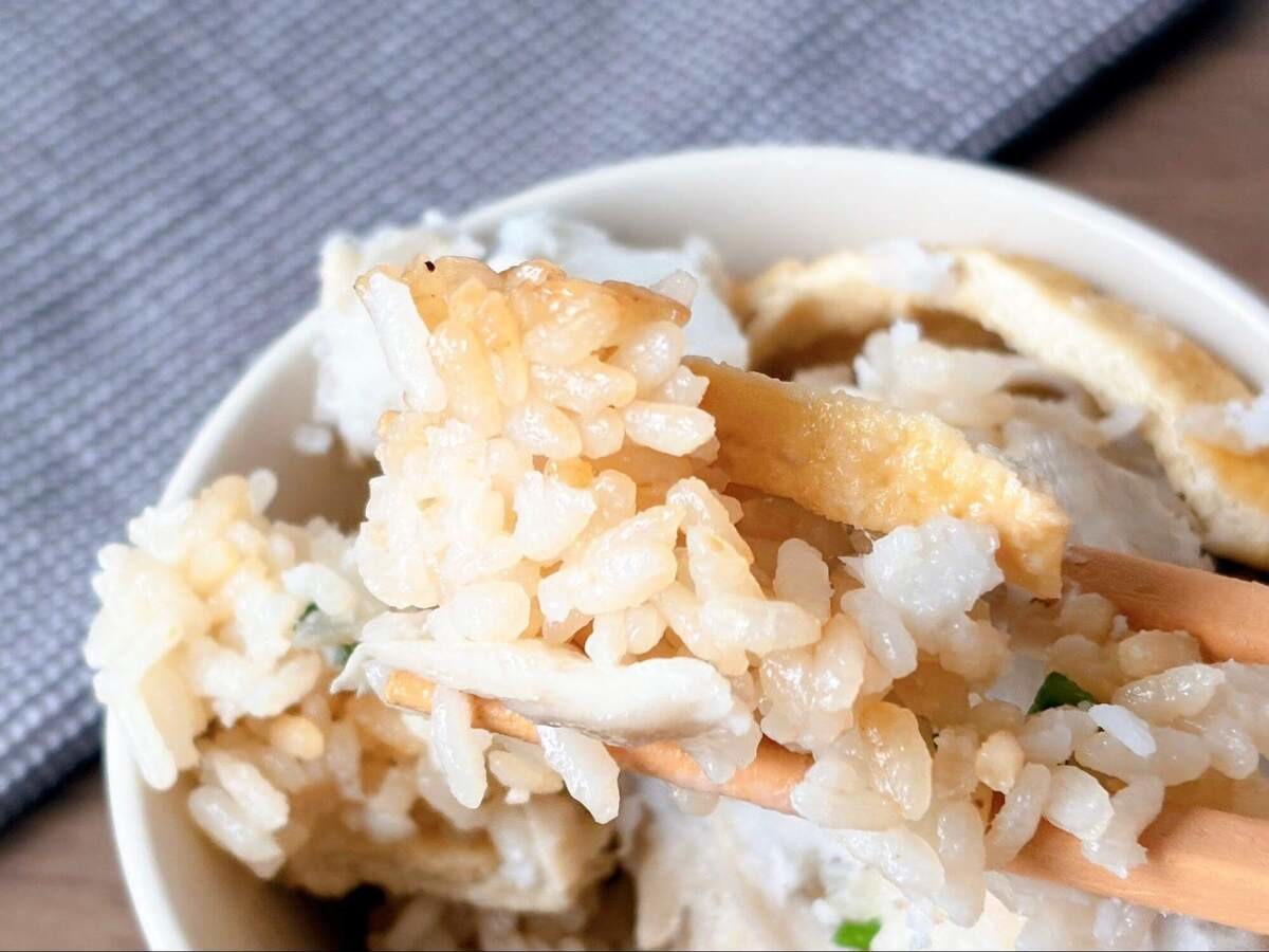 うどんスープと家にある調味料だけで作れるのに、出汁のきいた本格的な炊き込みご飯に仕上がりました。