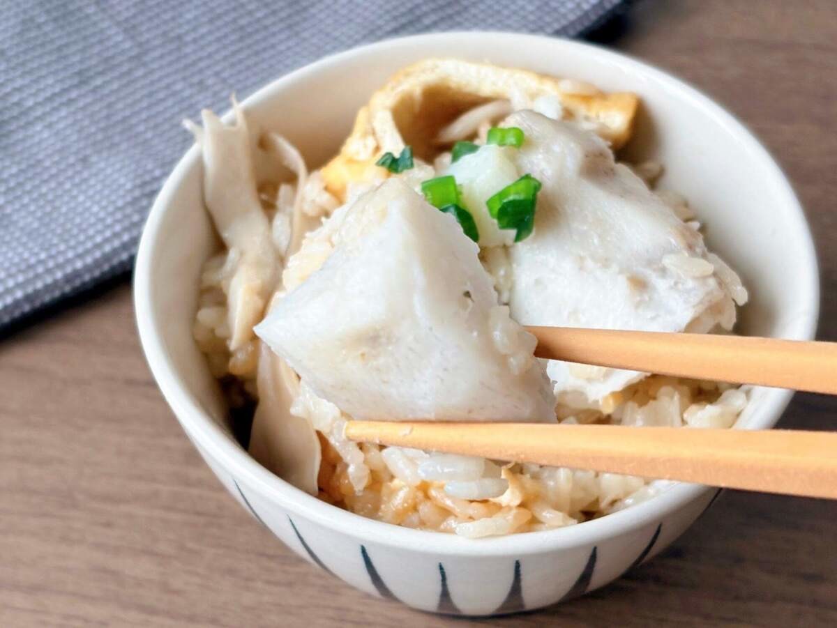ひと口食べてみると……おぉ、ご飯と里芋が合う!ごろっと大きめなのに、しっかり炊き込みご飯としてまとまっています。