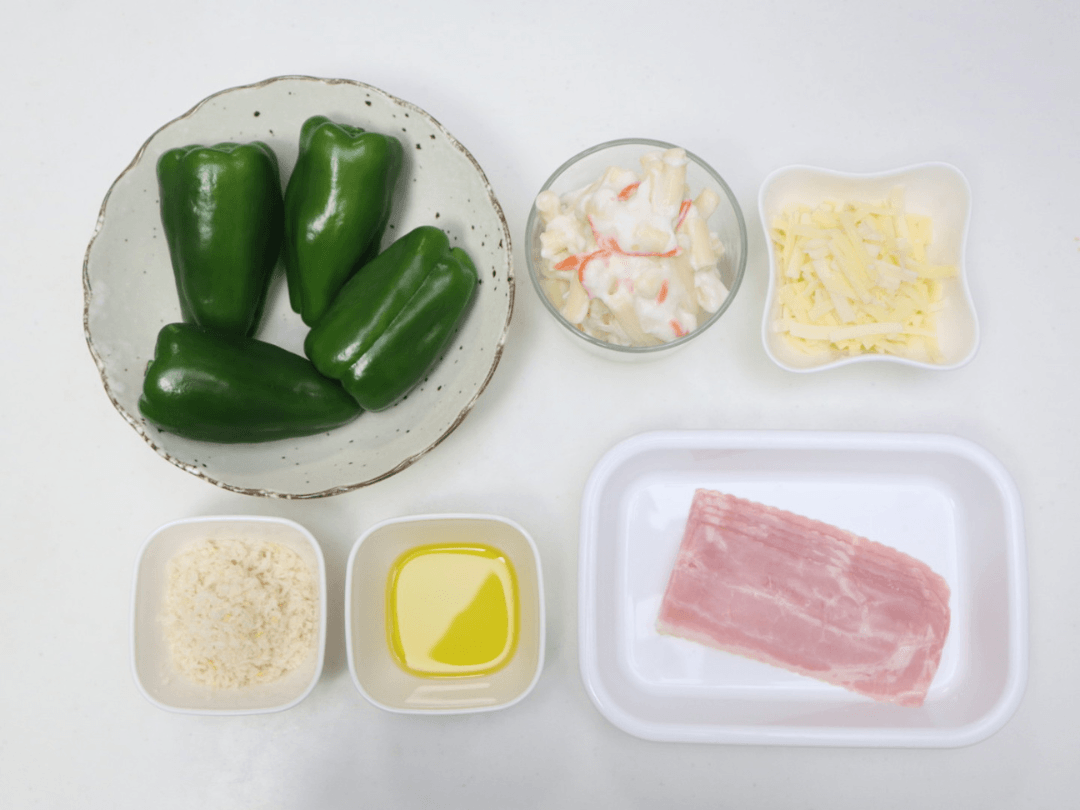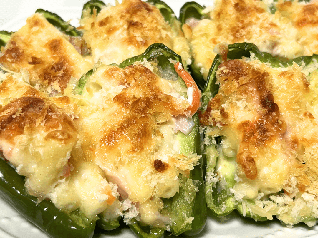 今回作るのは、ピーマンにマカロニサラダを詰めて作る「簡単ピーマングラタン」です!
