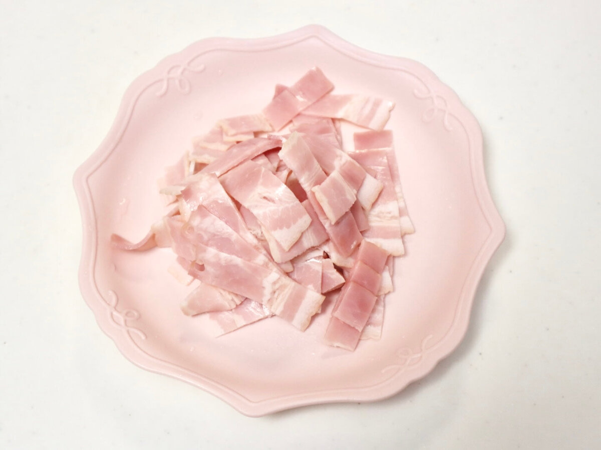 ベーコンも1cmくらいに短冊切りし、重なったところをほぐしておきましょう!