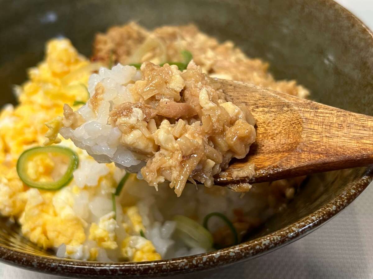 見た目はしっかりそぼろ丼なのに、使っているツナ缶はたった1つだけ。