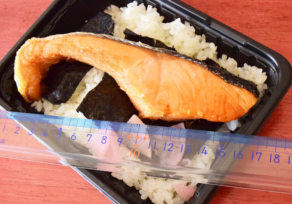 ざっと横の長さを測ったところ、約17cm。厚みもしっかりとあり、見た目からして食欲をそそる鮭です。