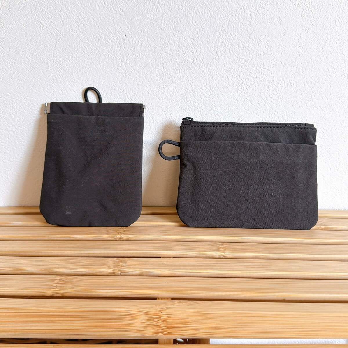 バネ口タイプ(790円)はワンハンドで開けられストレスゼロ。チャック付き(890円)は外ポケットにカードを入れてミニ財布代わりにもなります。サコッシュ派の人にはこちらを推したい。
