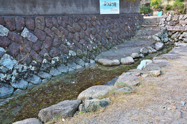 湧水を水源としており、気泡を伴いながら清水がぽこぽこと湧き出る様子が名前の由来です。「ふつふつ」が訛って「ぶつぶつ」になったと言われています。