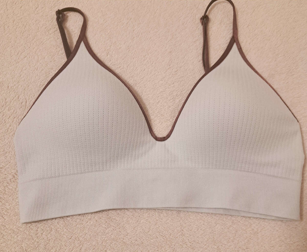 ブラはノンワイヤータイプで、締め付け感もありません!伸びが良い生地なので、まるで着けていないかのような軽やかさです。就寝時に着てもストレスフリーでした。