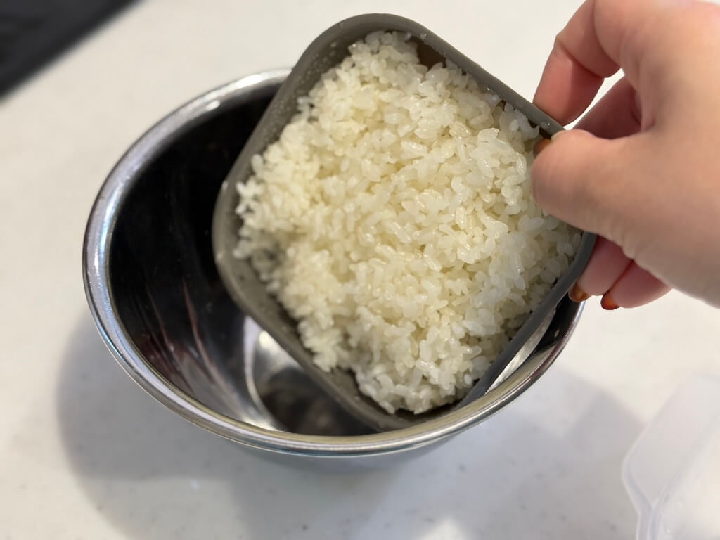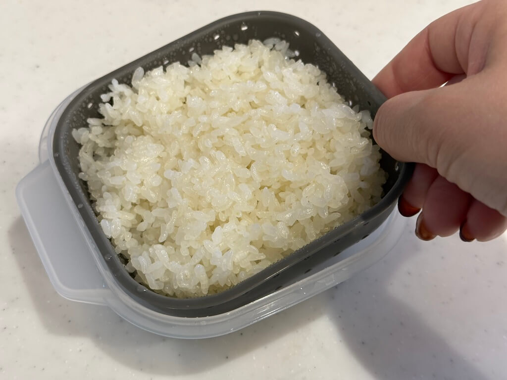 ごはんが入った状態でもザルを持ち上げられるので、そのまま茶碗にひっくり返して移し替えができるんです。このラクさは一度体験すると戻れません。子どもたちからも「これいいね!」と大好評でした。