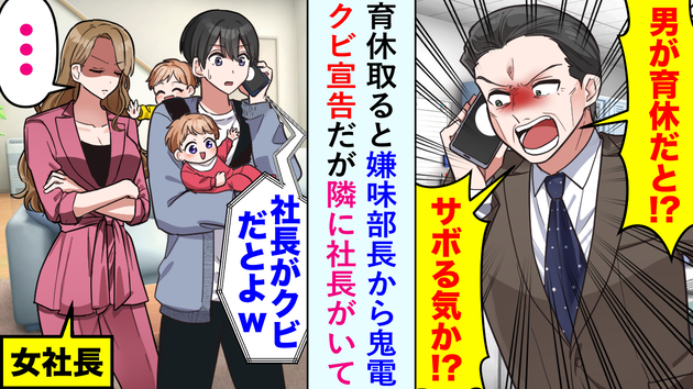 「男が育休だと!?ふざけるな!」嫌味部長から育休中に鬼電…(泣)ついには“クビ”!?→激怒した妻が痛烈な反撃!