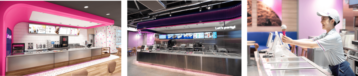 「Long Live Ice Cream(ずっと愛され続けるアイスクリーム)」をコンセプトに、「 LOUNGEデザイン」と「 STUDIOデザイン」の2タイプの新店舗デザインを順次導入します。