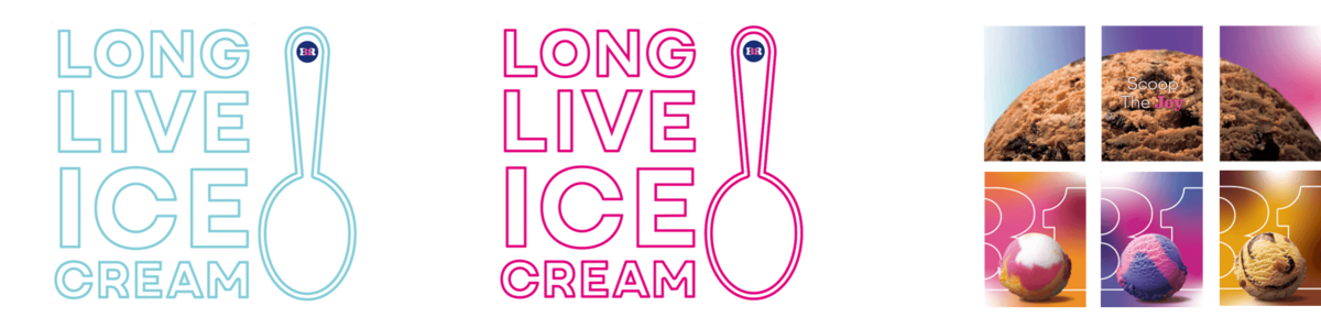 創業者の名前であるBASKINとROBBINSの頭文字BとRのあいだに「31」(サーティワン)が位置するデザインはそのままに、ピンクとブルーの色使いを、境目のないグラデーションに刷新しました。