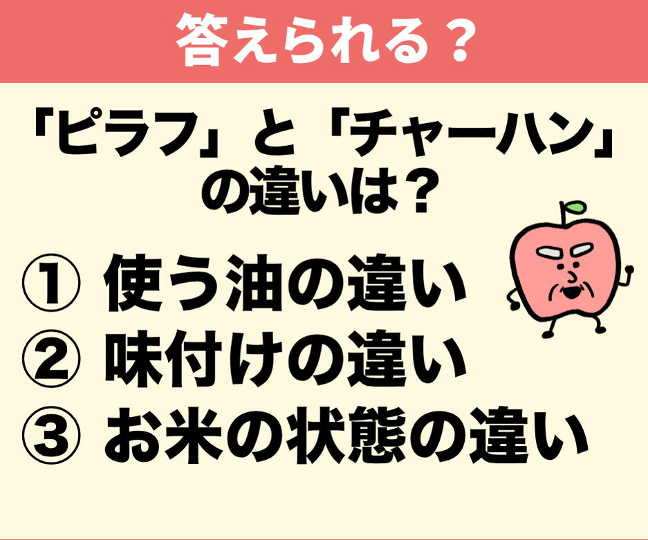 意外な定義を解説【クイズ】ピラフとチャーハンの違いとは?