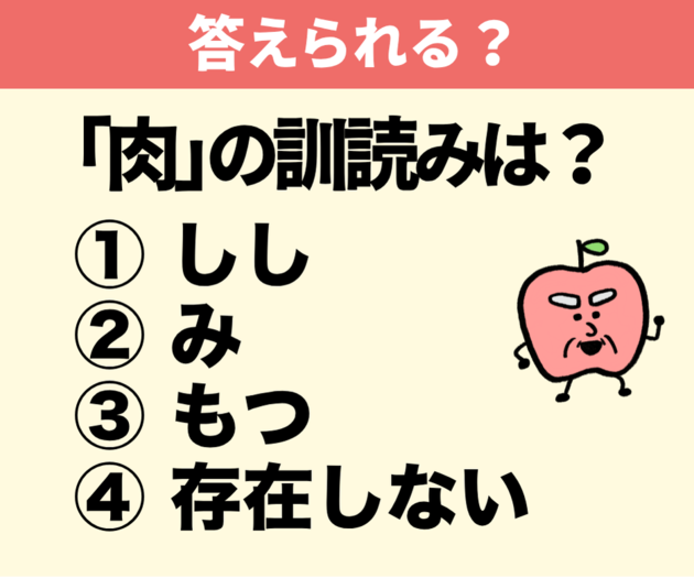 実は私たちが使っている「にく」は音読みで、公式の「訓読み」ご存知ですか?