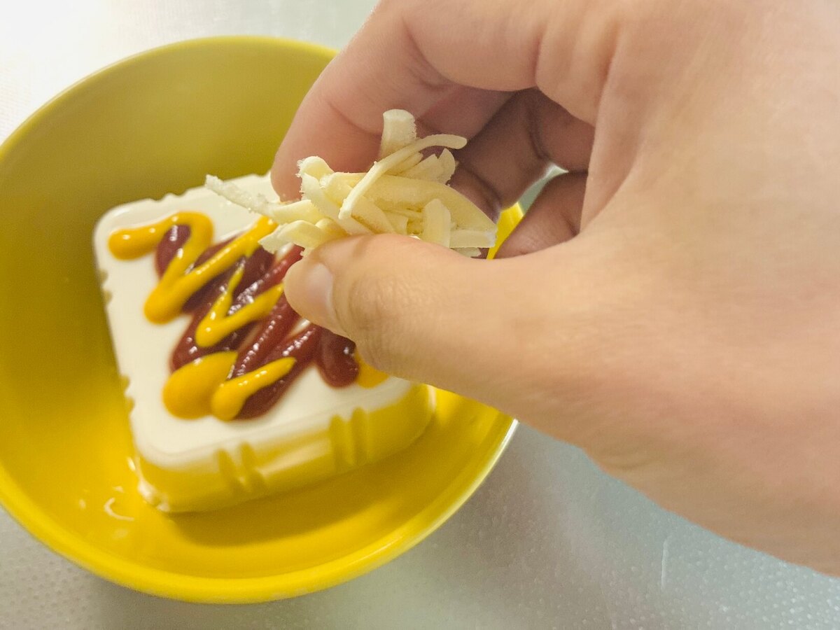 ケチャップとイエローマスタード、チーズの組み合わせは子どもウケも抜群ですよ。