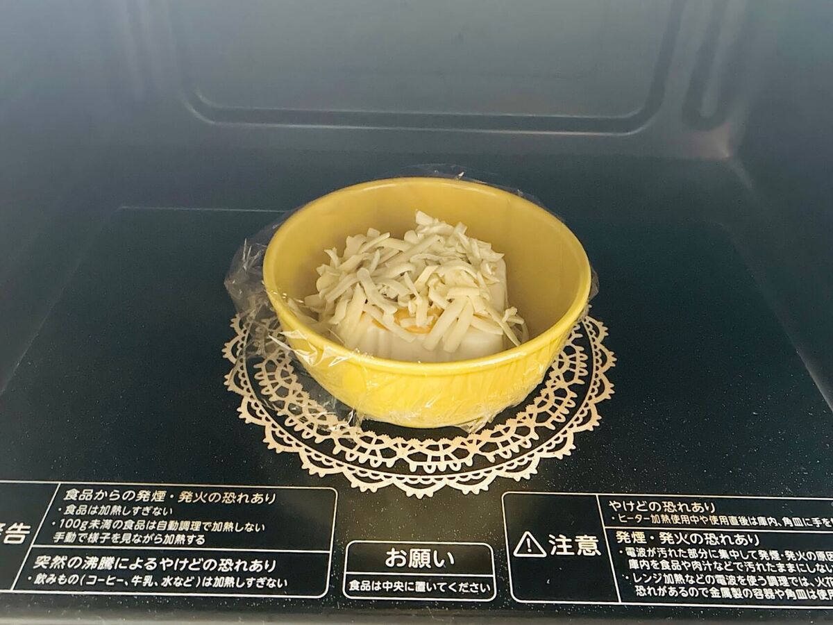 電子レンジ600Wで1分30秒ほど加熱しましょう。