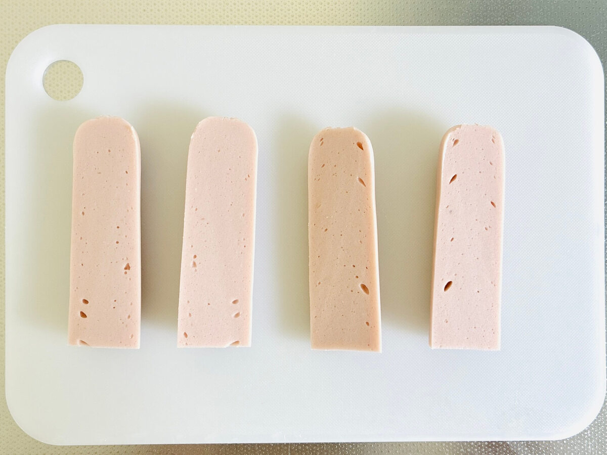 元レシピでは魚肉ソーセージを3本使うことになっていましたが、私は最終的に1本と半分しか使いませんでした。