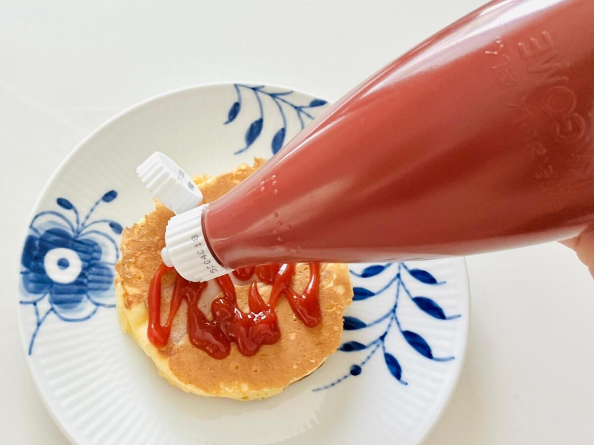今までホットケーキにケチャップをかける発想のなかった私は、思わず釘付けに……!!