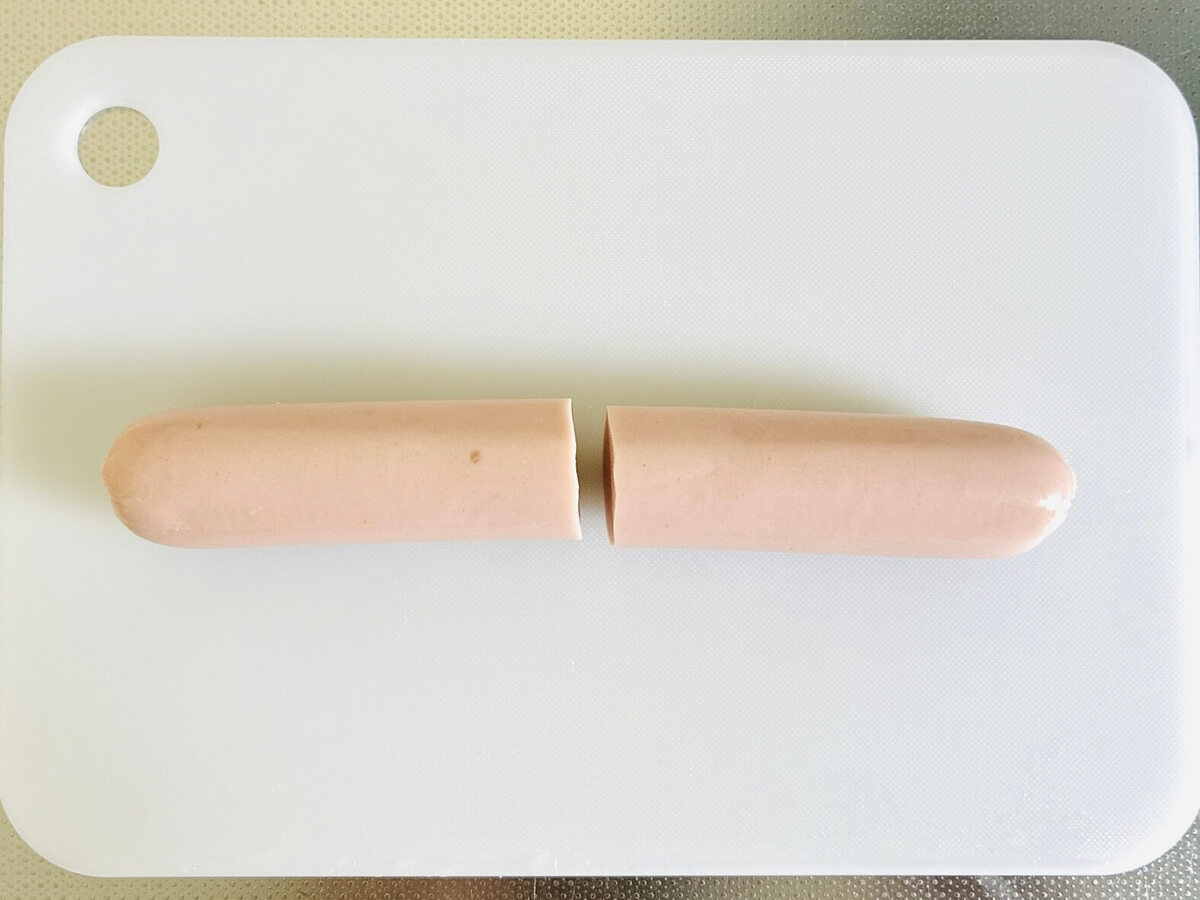 魚肉ソーセージは長さを半分にして、
