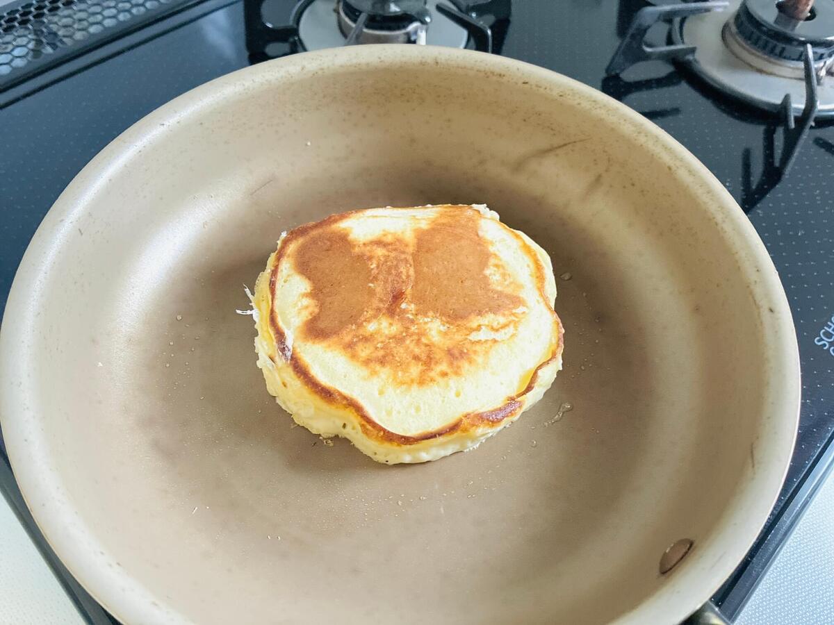フライパンに油を熱し、ホットケーキの生地の1/6量を丸く流し入れます。