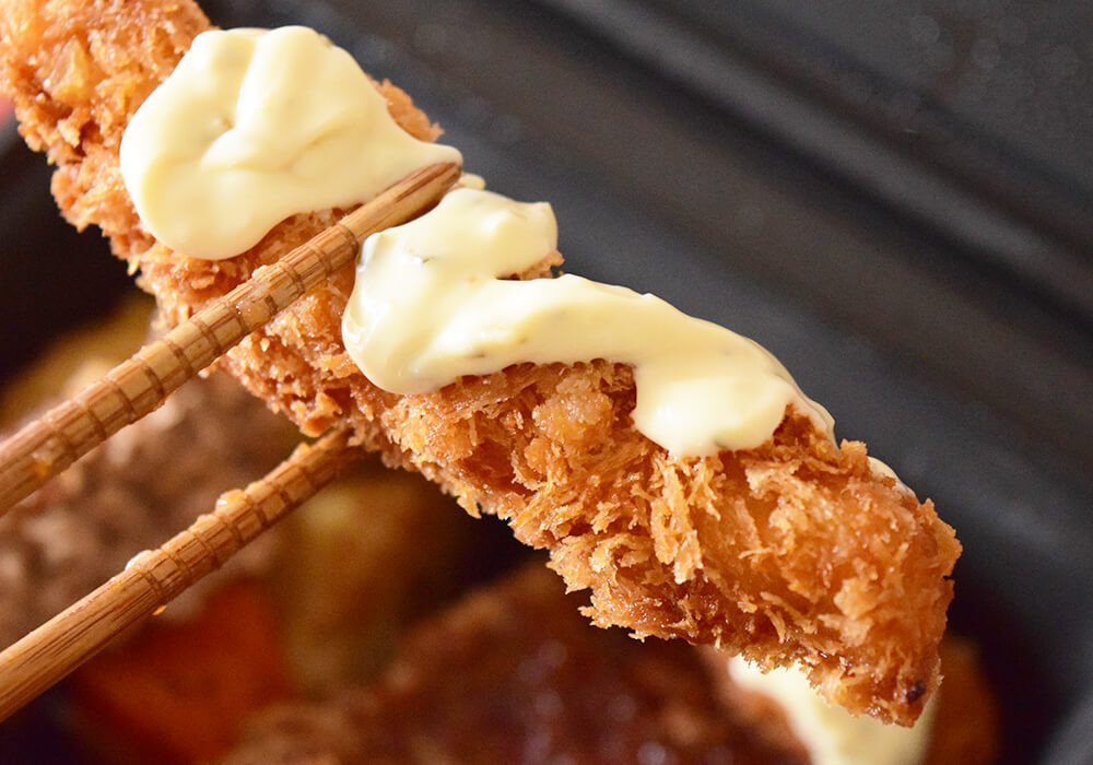 エビフライは付属のタルタルソースをつけていただきます。衣は薄めでサクサクとした食感。油っこさは控えめで、軽やかに食べられます。満足度の高いおいしさです。