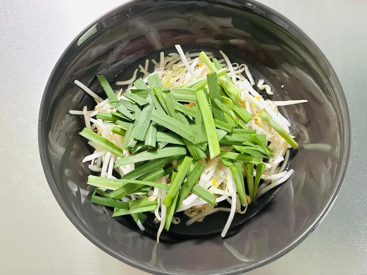 今回作ってみるのは、サッポロ一番の公式ホームページで紹介されていた「ニラもやしのみそまぜそば」です。汁なしアレンジに挑戦するのは初めてですが、作り方を見てみると……なんと調理は全て電子レンジ加熱とのこと。