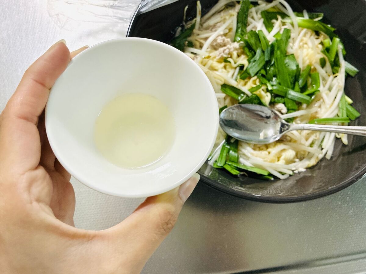 耐熱の器に麺を入れて、水を注ぐのですが……