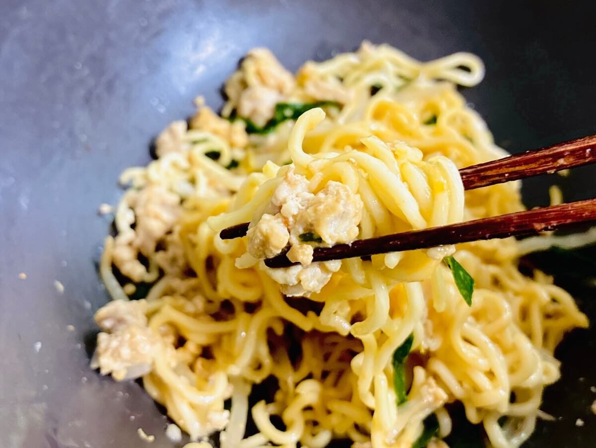 今回が初挑戦だった、鍋を使わない袋麺アレンジ。肉も野菜も投入したのに、こんなに簡単に完成するなんて……感動モノでした!