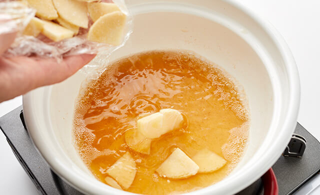 たけのこの冷凍方法①だし汁に浸す