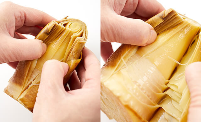 また、ゆでた後に皮をむきやすくなる効果も。たけのこの根元に紫色のイボがあればそぎ落としましょう。