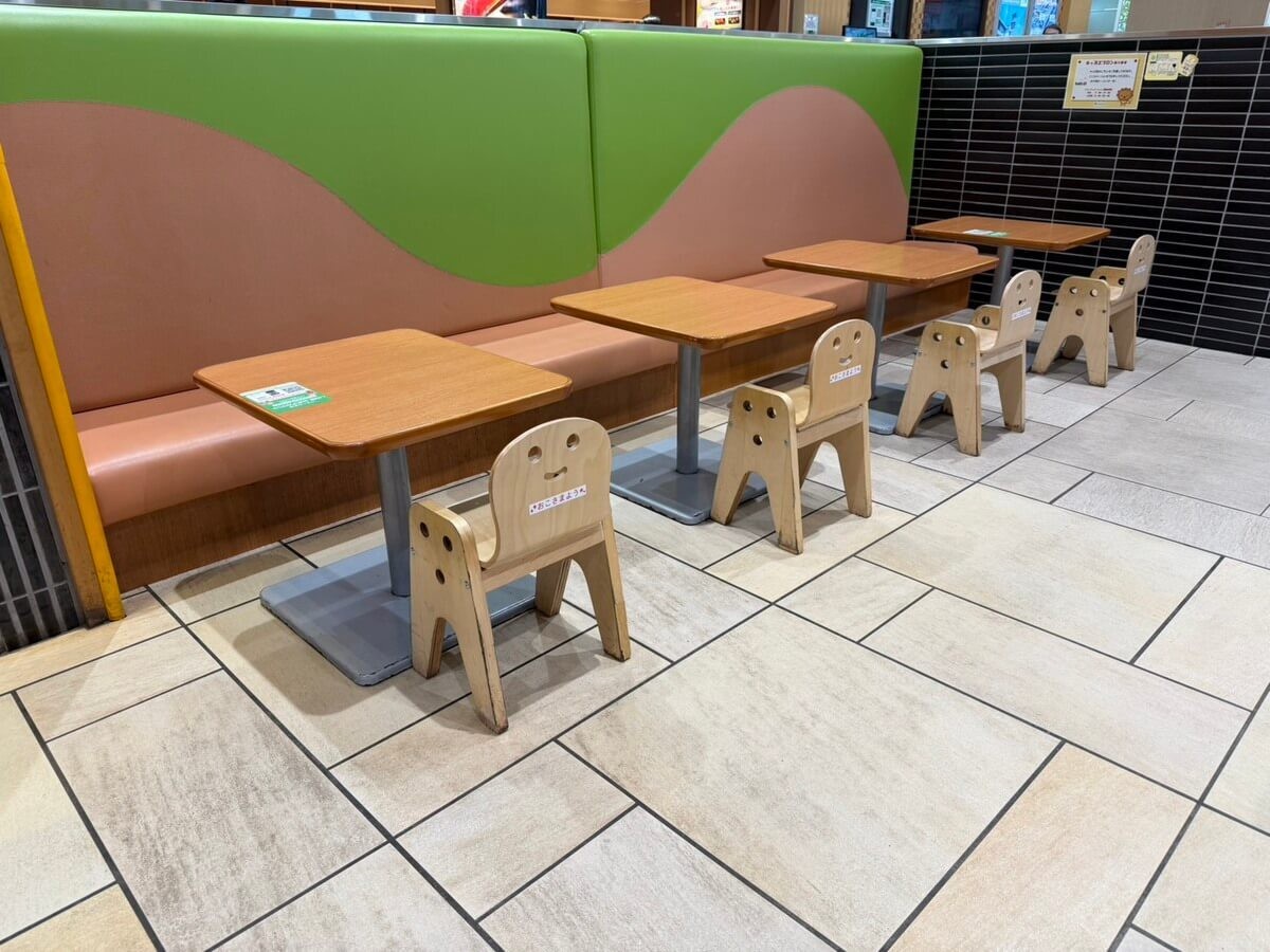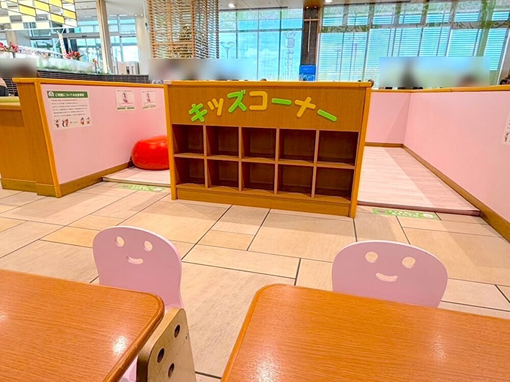 子ども用のテーブルと椅子があり、目の届く位置にキッズコーナーもあるので、食事の時間もゆったりしやすいんです。