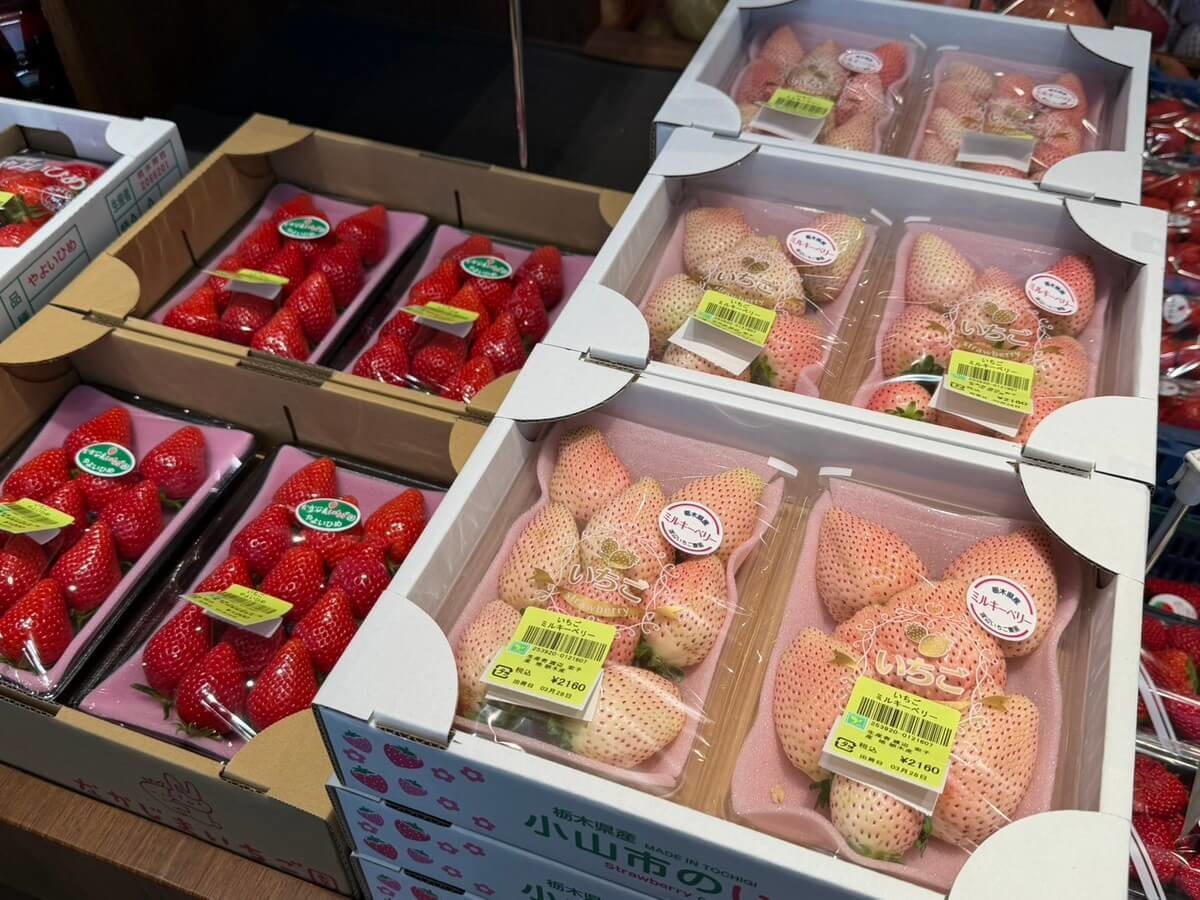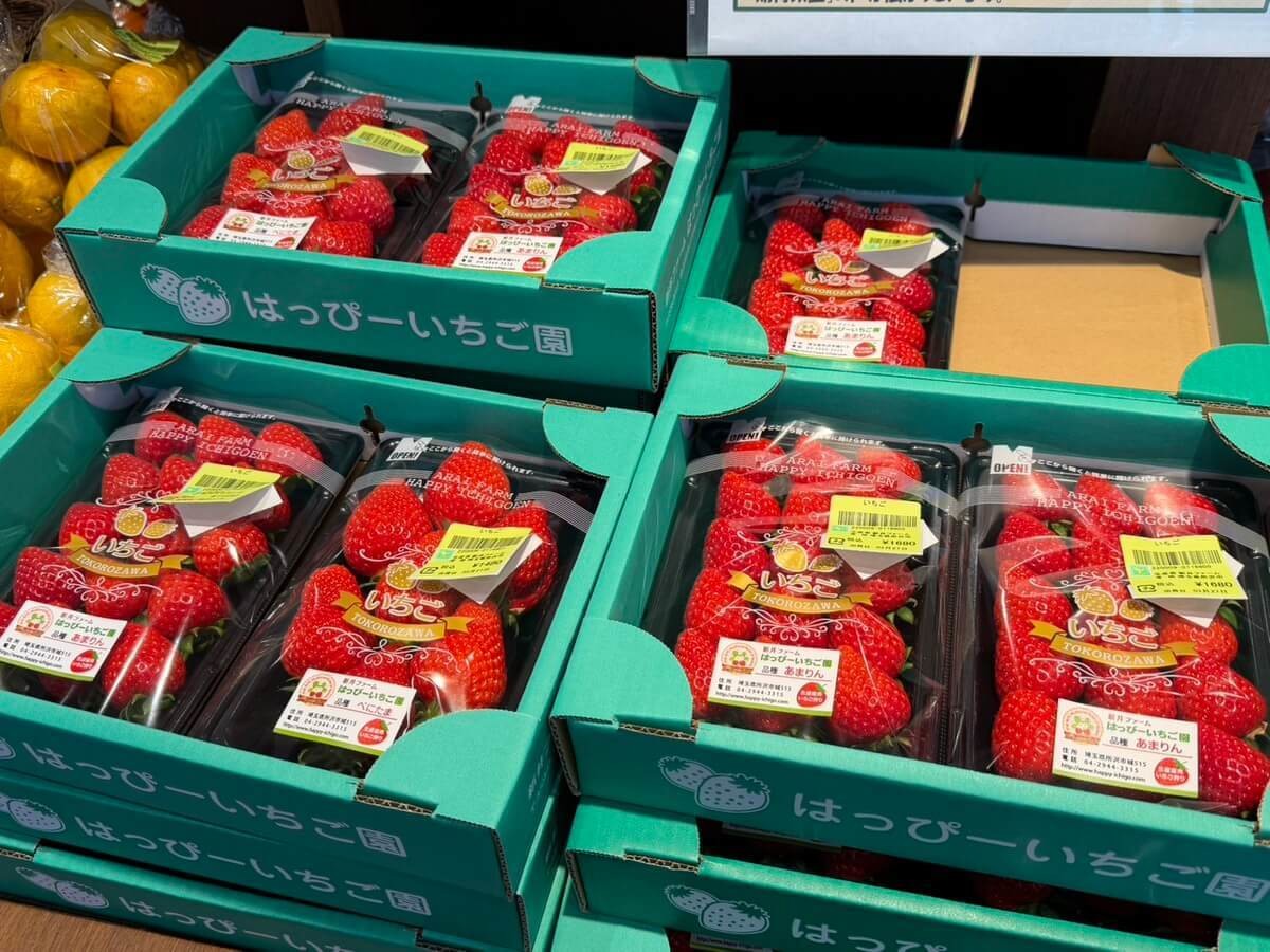 今の時期は、大粒でつやのあるいちごがずらりと並んでいて、見ているだけで気分が上がりました。
