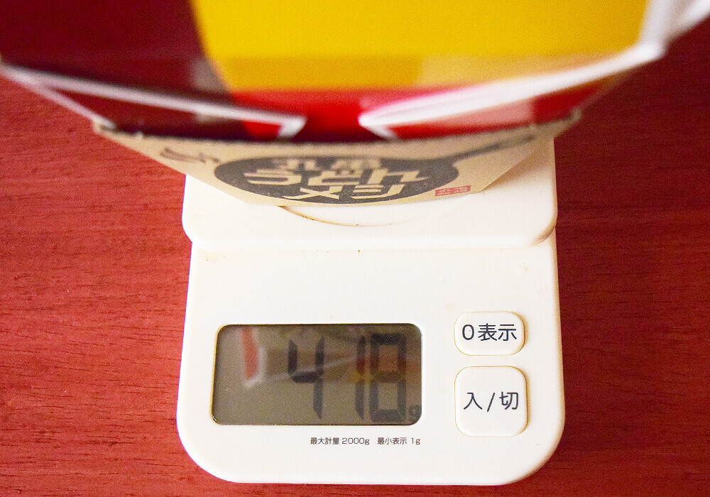 ちなみに、容器込みの重量は約418gでした。他の2品もほぼ同じ重さだったため「丸亀うどんメシ」は全体的に約400g前後で調整されているのかもしれません。