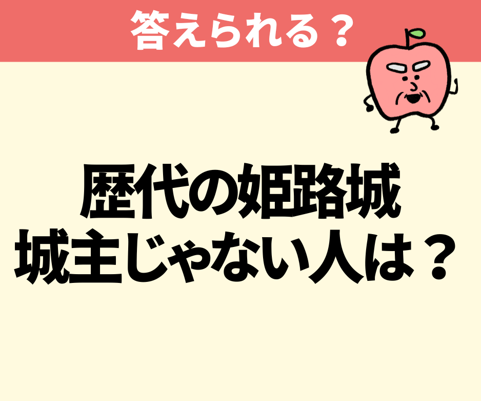 実はこのお城、時代によって城主(持ち主)がコロコロと変わったことでも有名です。 では、次の戦国武将のうち、歴代の姫路城の城主(持ち主)になったことが「ない」人物は誰でしょう?