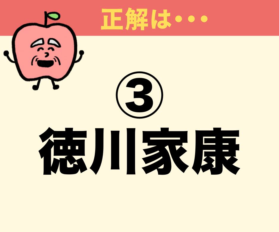 正解は… 3. 徳川 家康(とくがわ いえやす) です!
