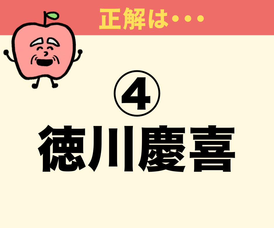正解は… 4. 徳川 慶喜(とくがわ よしのぶ) です!