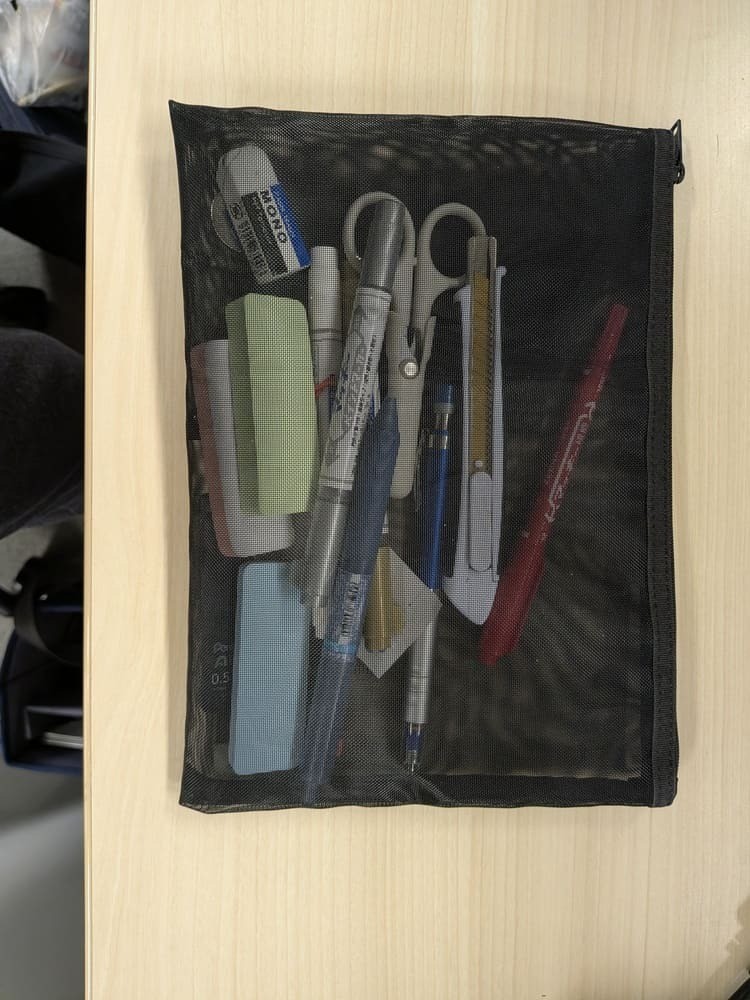 網状のメッシュ素材を採用することで、ポーチを開けずとも中身が即座に確認できる高い視認性が魅力。