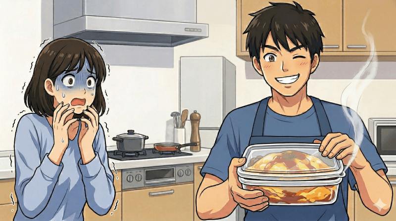 ドヤ顔でウインクする夫の横で、私は一気に血の気が引きました。真っ白に曇るお弁当箱の中で、あの半熟卵がサウナ状態で放置されるなんて……想像しただけでゾクッとします。